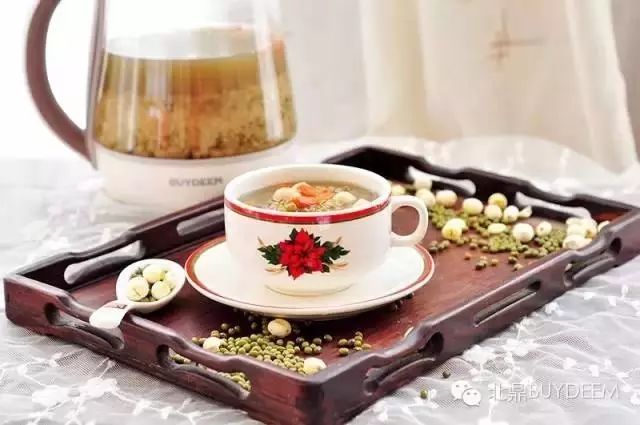 荷叶性平,味苦涩,有解暑热,清头目,止血之功效;现代营养学也证明,荷叶含有荷叶碱,莲碱等成分,具有清泻解热,降脂减肥及良好的降压作用。因此,荷叶粥或荷叶饭是夏天极佳的解暑食物。做法是用鲜荷叶一张(约200克),粳米100克,白糖适量为原料,将米洗净,加水煮粥,临熟时将鲜荷叶洗净覆盖在粥上,焖约15分钟,揭去荷叶再煮沸片刻即可。喝时可适量加点白糖。荷叶粥不仅可以有缓解心烦或者是秋燥的情况,而且还可以助消化,对于开胃消食有好处,同时也可以有抗氧化的作用,对于多种人群都适合。