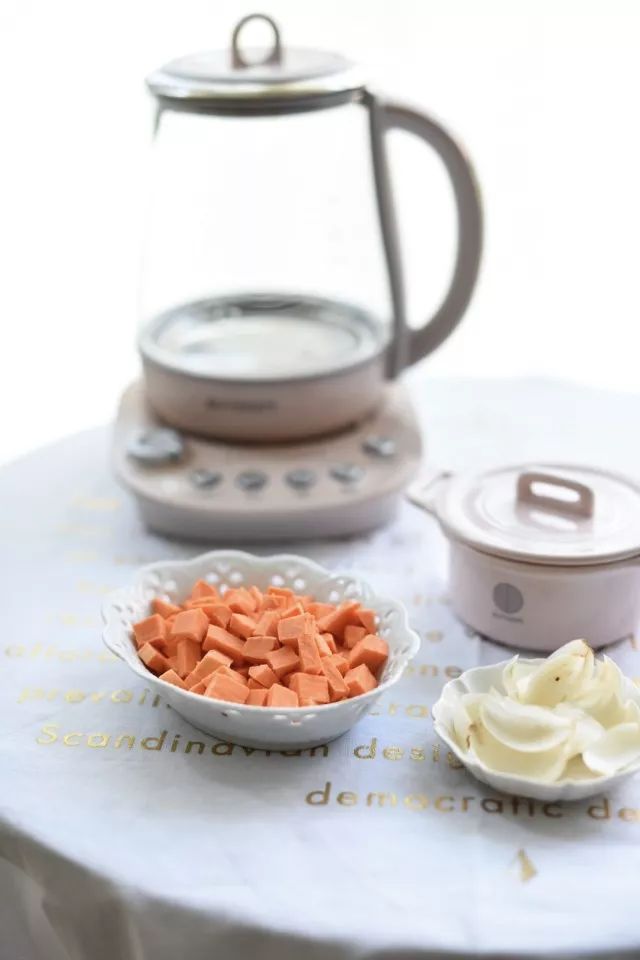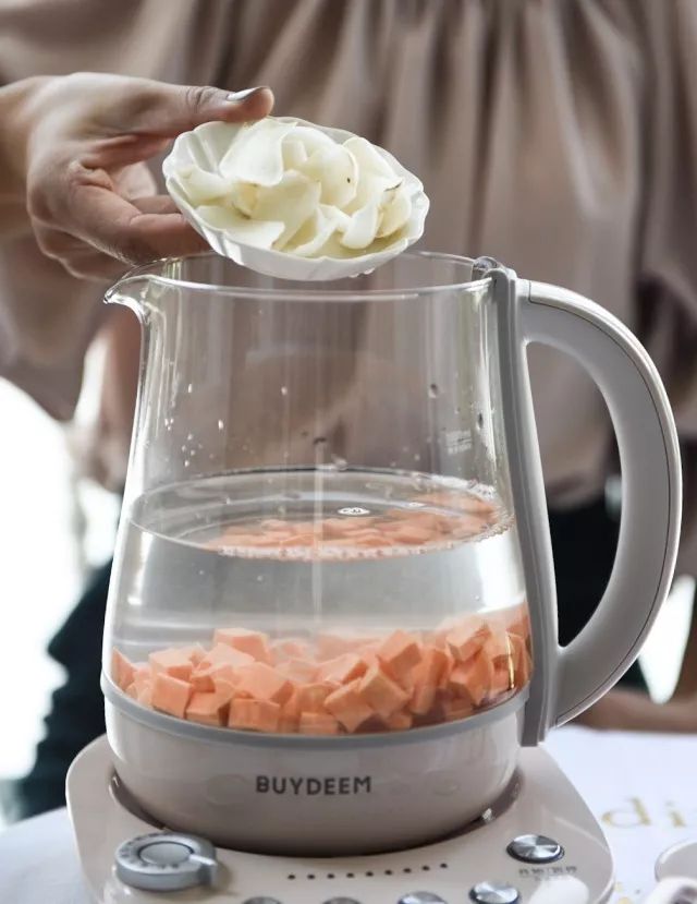 2.将红薯、百合、蜜枣放入养生壶内,加水至1200ml,启动养生汤模式。