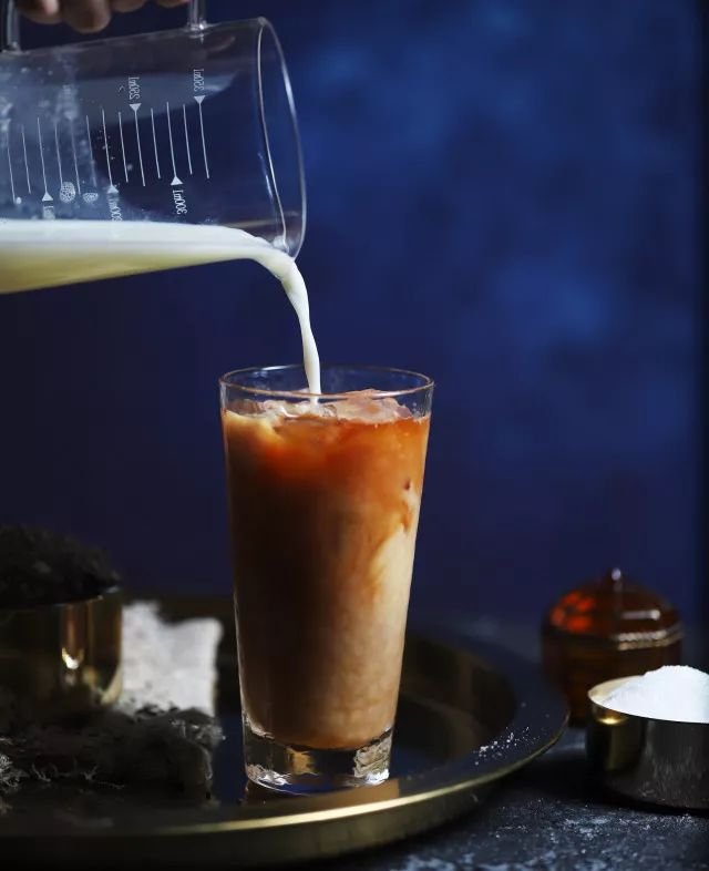 稍微等待8分钟左右,将奶味冲入红茶中,红褐色的茶汤慢慢变成淡淡的焦糖般的颜色,搅动待乳粉混合均匀,细腻的红茶香就开始被奶香包围,入口丝滑,醇香缠绕。