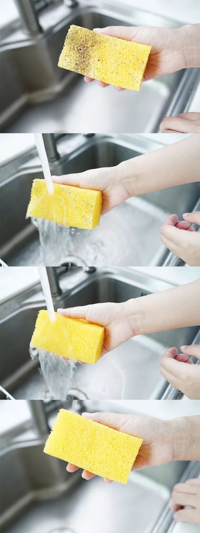此外,清洁膏赠送的海绵的清洗也是很方便。只需要用清水冲一冲,就可以把污垢都冲走!