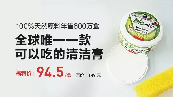 Bio-star清洁膏采用了品牌近70年的独家技术配方+天然产品才有的生物酶,获欧洲最高有机ECO认证,号称“可以吃的清洁膏”、“baby safety”。
