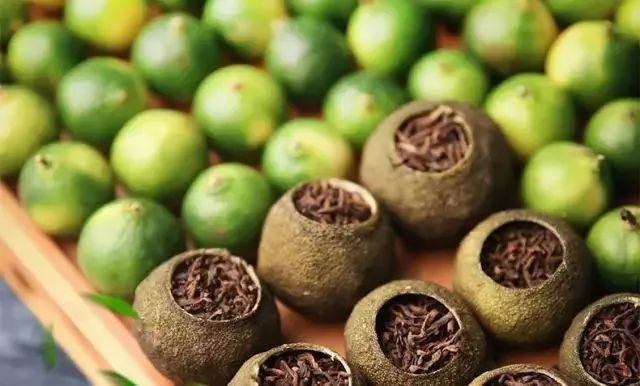 小青柑是以果皮未着色、未成熟时的纯天然青柑和云南普洱熟茶为原料,制成独具风味、清喉缓和的小青柑普洱茶。