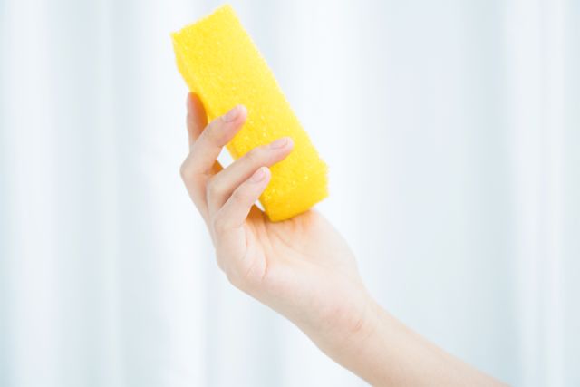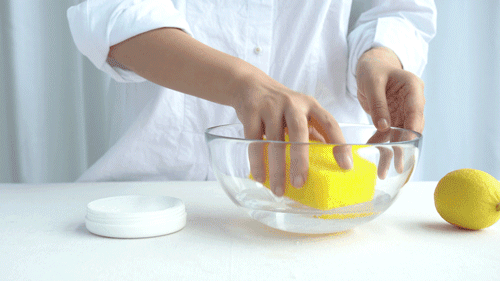 一、拿出清洁膏配套的海绵,充分湿润后挤出多余水分。