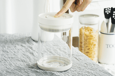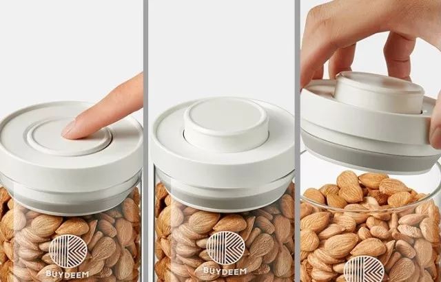小北家的储物罐,最特别的一点就在于它采用直上直下的按钮式,一只手轻轻一按就能开关!