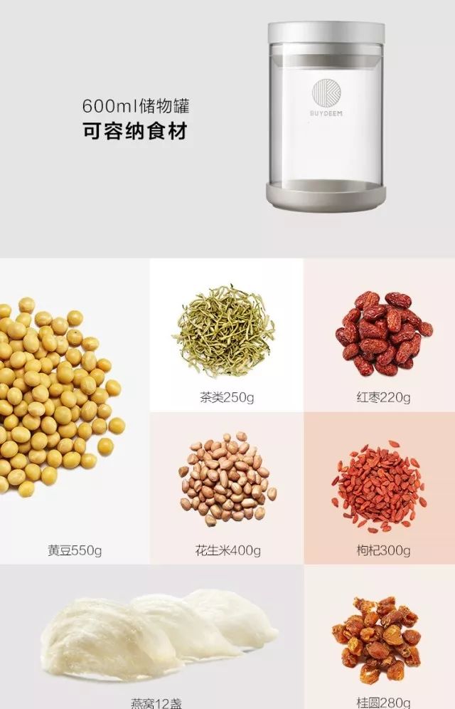 1200ml的大小可以放些比较占位置的银耳、燕窝等食材。