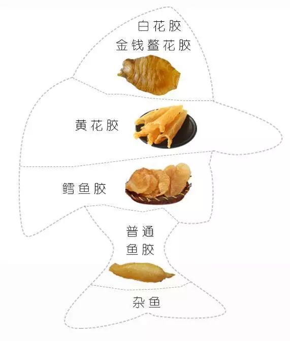 花胶的种类有很多,顶级的有白花胶和金钱鳌花胶,价格高,市面上很少见,一般都是用来收藏的。