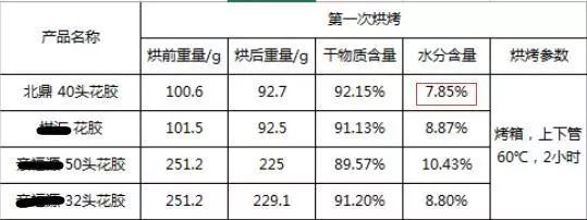 小北家花胶经与其他产品检测对比,干度更足,水分更少。