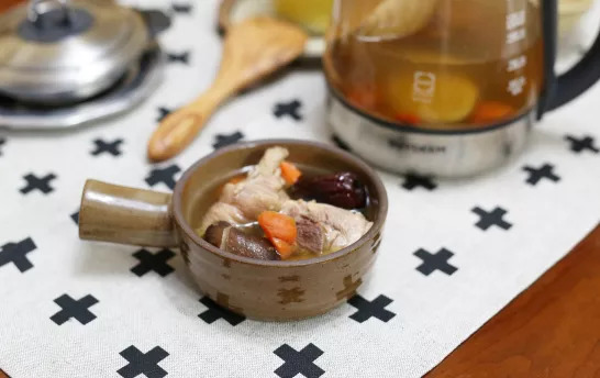 3.再把红枣也放进去同煮,等到养生壶程序结束即可,待汤水温了之后加入适量的蜂蜜。