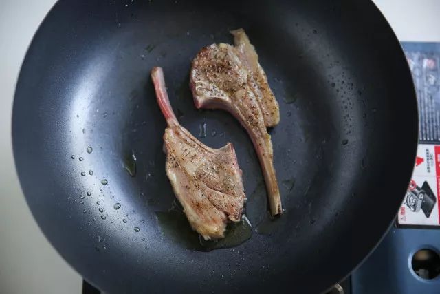 2.锅内加入橄榄油加热放入羊排。