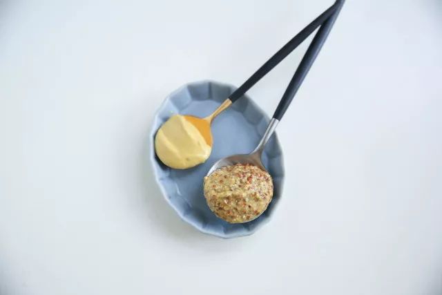 4.黄芥末酱1/2大匙\芥末籽酱1大匙混合。