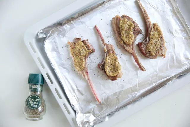 5.涂抹在羊排上,撒上综合香料。