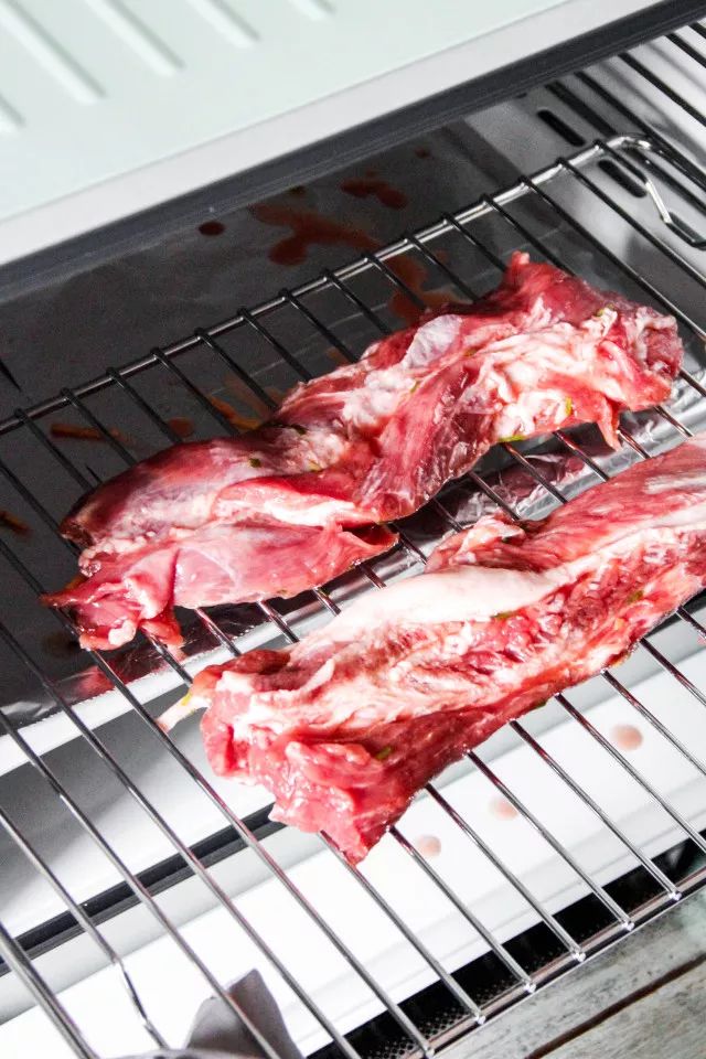 8.烤好的肉条取出后稍放5分钟,即可切片食用。
