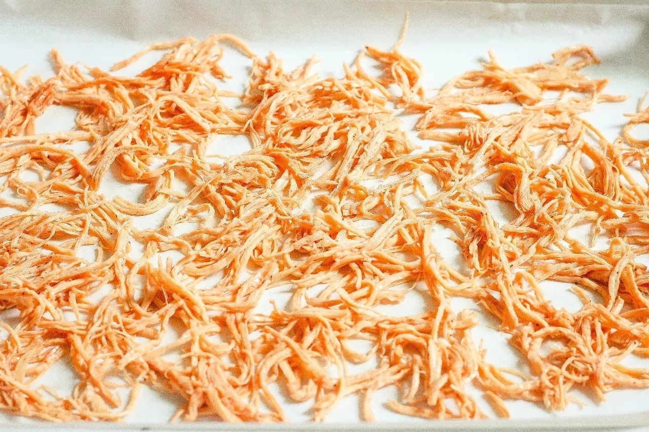 1、把鸡胸肉煮熟,冷却后撕成丝状