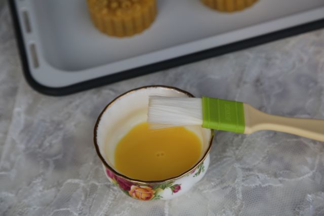 3. 刷蛋黄液的时候注意要轻轻的少量的,不要把蛋黄水刷的纹路里都是,就只是轻拂一层蛋黄水而已。