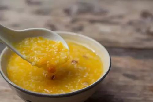 小米的最佳吃法是熬粥,加上富含膳食纤维的南瓜,对脾胃是极好的。南瓜子也是健脾的上好食材,如果不抗拒的话,可以不用去掉南瓜子。