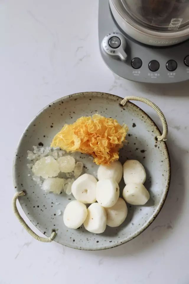 1.银耳洗净用手掰碎,放入养生壶内,启动甜品糖水程序;