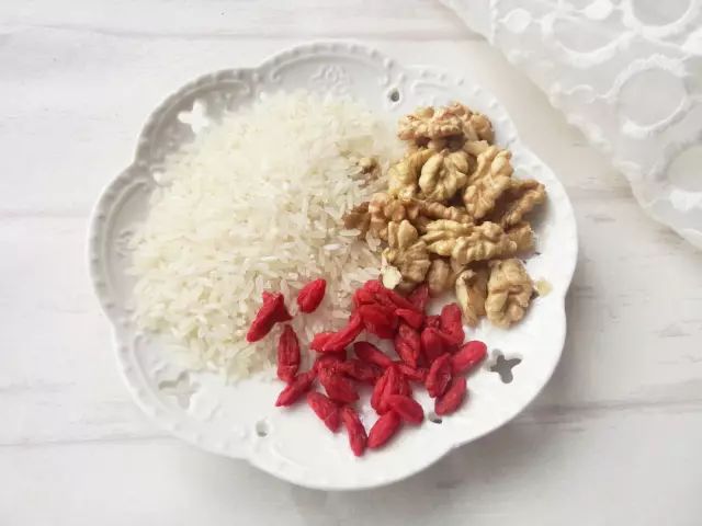 2.核桃仁洗净,枸杞去杂质,洗净,用温水浸泡回软;