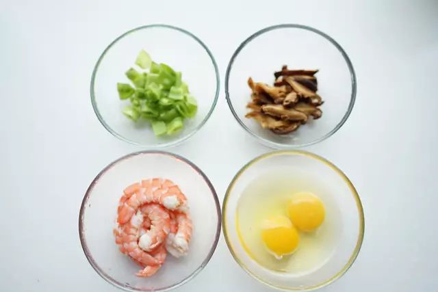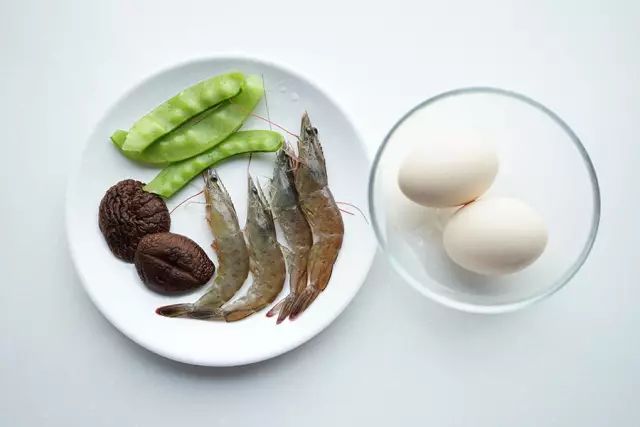 1.处理食材。虾仁去虾线,荷兰豆切块,香菇切条。
