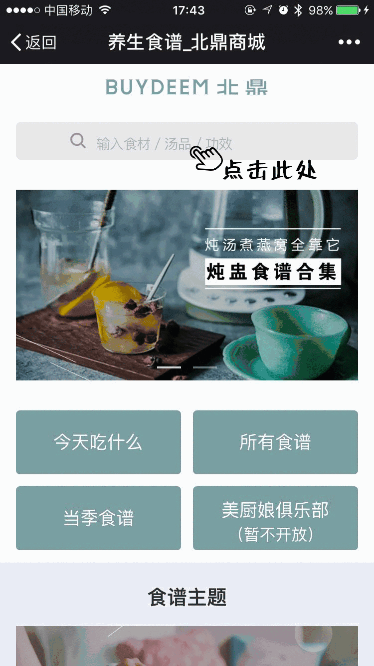 第三步,输入你想要搜索的【食材】/【汤水品】/【功效】(以燕窝为例)