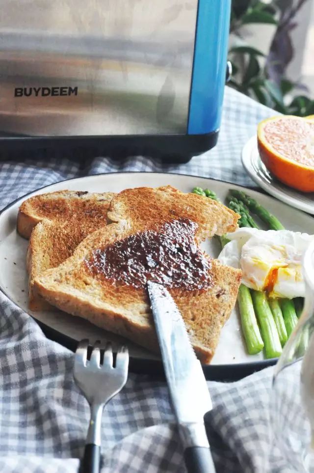 首先你要知道,隔夜的吐司通常不会好吃到那里去,小北一般会用多士炉加热一下,再刷牙洗脸之前把吐司放进多士炉里,刷牙的时候你就能闻到面包香,等梳洗完毕出来,面包就已经烤好了。