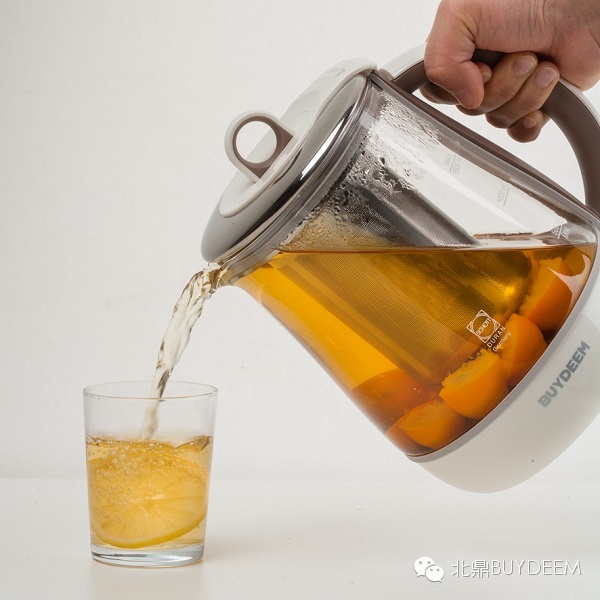 3.待壶内温度凉一会儿后,放入柠檬片,倒出即可饮用。