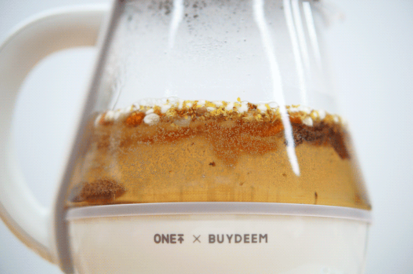 2.开始【水果茶】模式,待自动断电后,将红茶放入过滤茶篮中,盖上壶盖闷泡1分钟,然后取下过滤茶篮。