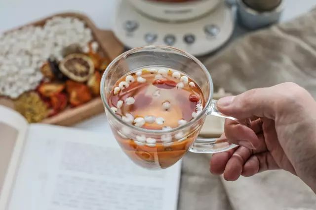 2.将全部食材放入养生壶,加水1200ml,启动养生汤模式。待养生汤自动断电,加入冰糖即可。