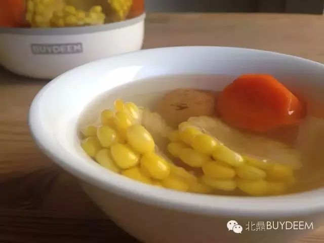 2.将玉米、胡萝卜、蜜枣放入养生壶,加水至1500ML,启动养生汤模式。