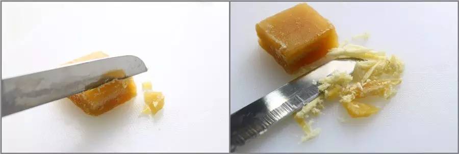 ▲ 正宗的黑糖刮起来,虽然有声响,但是沉闷而柔软,表面轻轻一刮就会起沙。