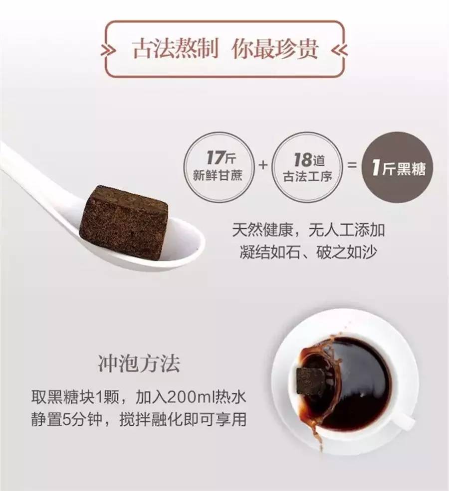黑糖实际为传统红糖的一种,其制作工艺流程与红糖完全一致,只是在熬制时间上较一般红糖时间稍长,且富含铁元素,熬制成形后与空气接触久之氧化,固色彩呈黑色、褐色状,且有焦香味。