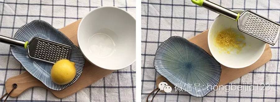 ▼ 将柠檬外皮擦出皮屑(只要黄色的部分),柠檬果肉部分挤出果汁,分别准备好;