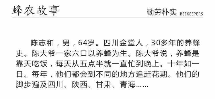 这个团队,为了寻找一瓶好蜜,特意前往当地,与蜂农一起工作,深入蜜源地,探查当地环境,了解蜂蜜出产的全过程。这句slogan在当时,霎时间形象地印入脑海,“1瓶蜂蜜=100万次飞行”。别以为这是矫情,这就是制作一瓶纯天然成熟蜂蜜需要付出的代价,至于那些人工喂养、喂食白糖之类的,不在此探讨范围之内。