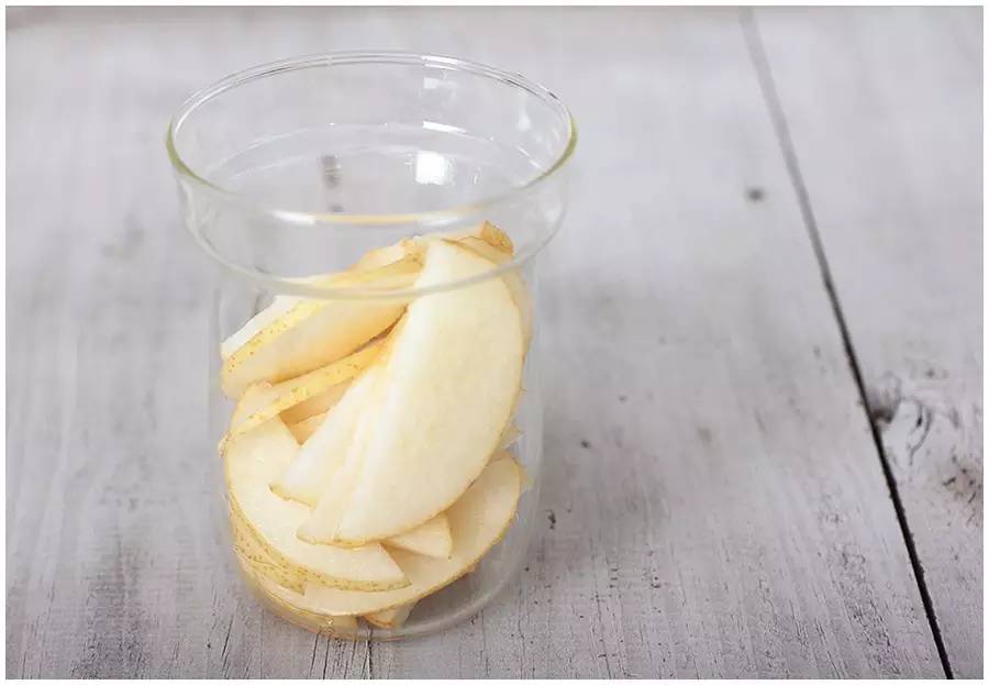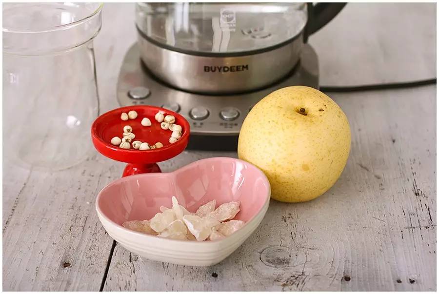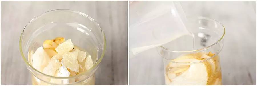 ▼将雪梨、冰糖和川贝一起放入炖盅,加入适量净水。
