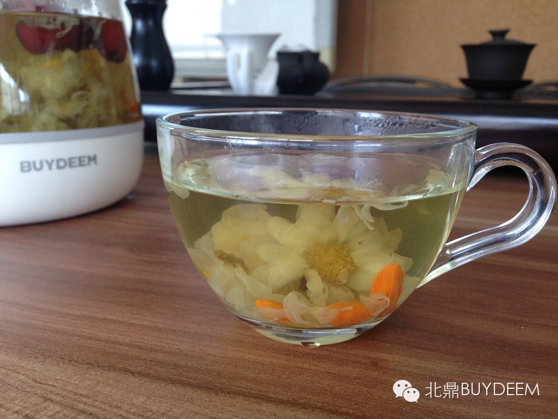 3、启动花草茶模式,待养生壶自动断电后,加入蜂蜜调味即可。