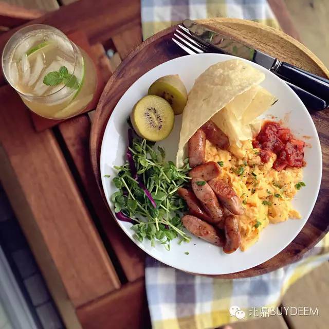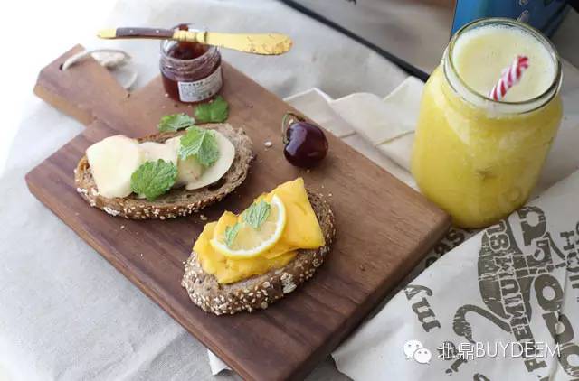 5.这么丰盛的早餐必须配一杯清爽好喝的蜂蜜柠檬汁:将蜂蜜用温水搅拌后,挤入柠檬汁,加冰块、薄荷叶就好啦!