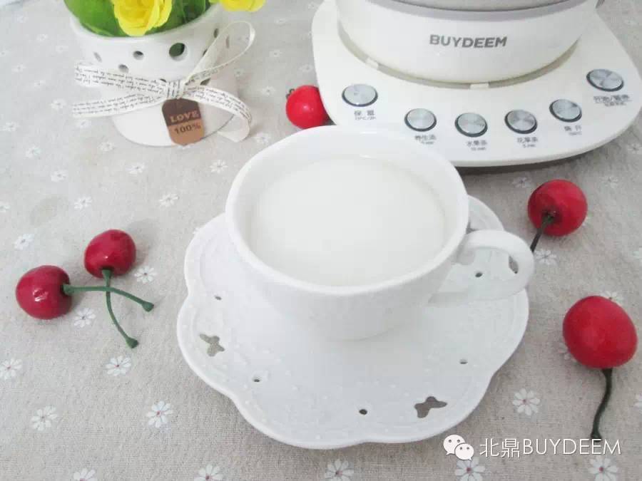 3.待养生壶自动断电,加入牛奶、蜂蜜即可。
