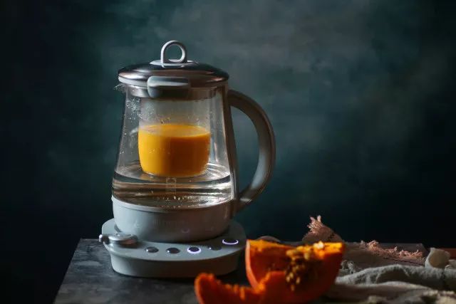 2.将蒸熟的南瓜、牛奶、砂糖、盐混合用搅碎机打成浓汁。