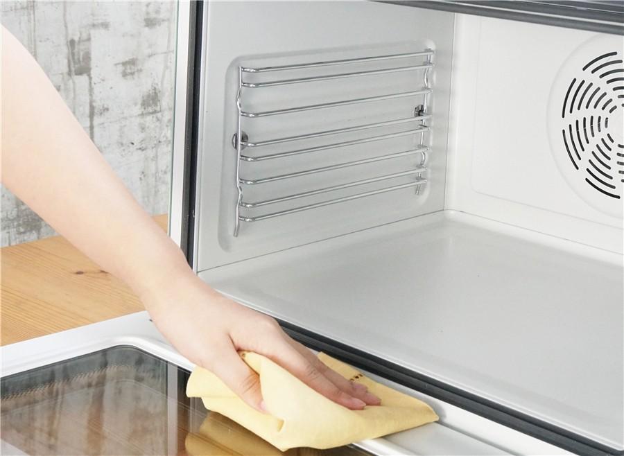 空烤完毕后,我们需要将电源插头拔掉,静待烤箱彻底冷却。然后再用温水沾少许的中性清洁剂,将烤箱内部再次擦拭干净、晾干。擦拭时还是需要注意避开发热管。