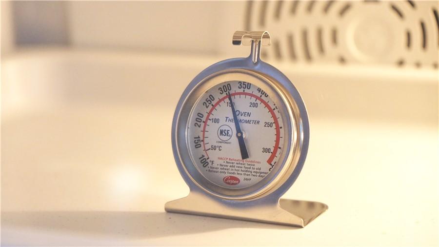 清洁完的烤箱已经可以使用了。但为了保险起见,我们在正式使用之前,还需要用烤箱温度计检测一下烤箱的实际温度。