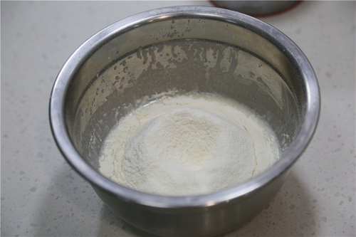 放入过筛后的低筋面粉,轻伴均匀至无干粉状态。