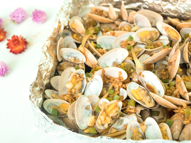 将新鲜花甲放在水中浸泡,在水里加一点盐和油,让它吐沙。然后洗净备用;