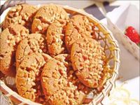 熟花生300g,黑芝麻20g,椰蓉30g,低筋面粉390g,小苏打2g,糖180g,鸡蛋3个,盐2g,黄油270g,