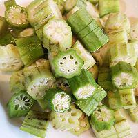 锅内不放油,煸炒秋葵,这样秋葵就不会粘哒哒的了!直至快熟的时候盛出