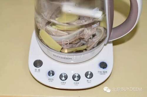 捞出羊排洗净,将养生壶中其余汤水材料全部倒掉;