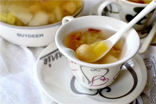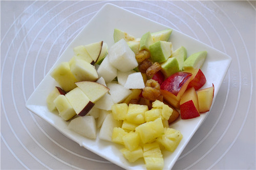 菠萝 30克、蜜桃 30克、芭乐 30克、梨子 30克、苹果 30克、龙眼干 适量