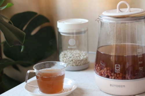 将红小豆和薏米淘洗干净,放入养生壶中,加水至1500ml水位线,启动烧开模式。