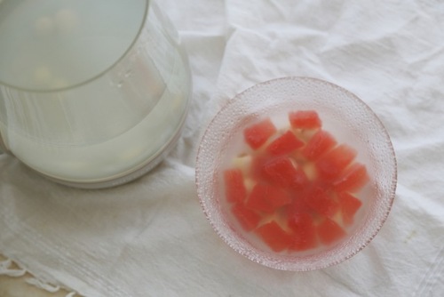 配方:水淀粉,冰糖,莲子,西瓜