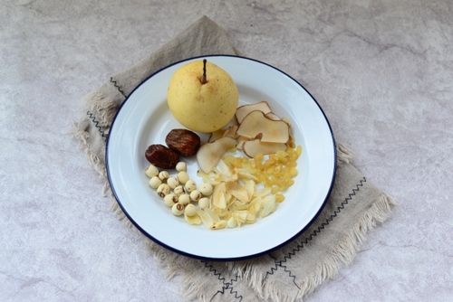 新鲜百合 1颗、海底椰干泡发 2g、雪梨 1个、皂角米泡发 一小把、莲子泡发 15颗、蜜枣 3-5颗、冰糖可选 适量