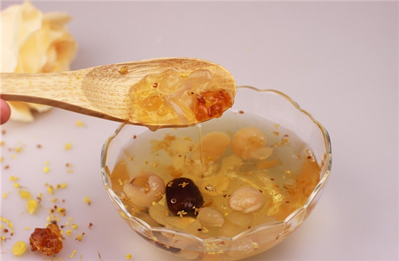 桂花 1g、桂圆 5g、皂角米 8g、红枣 12g、桃胶 20g