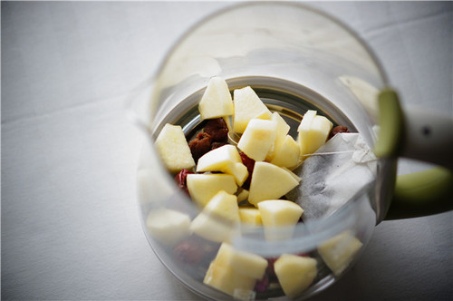 将切好的苹果丁和柠檬片(半个量)放入北鼎养生壶中。